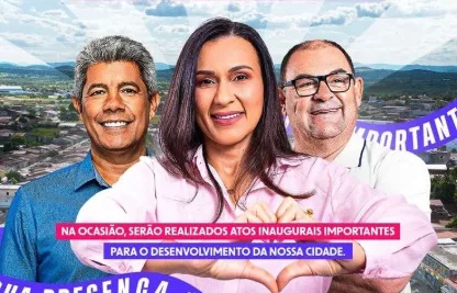 “A prefeita Dra. Fabiane tem a honra de convidar toda a população para recepcionar o governador da Bahia, Jerônimo Rodrigues, em sua visita ao nosso município.”, diz o convite.