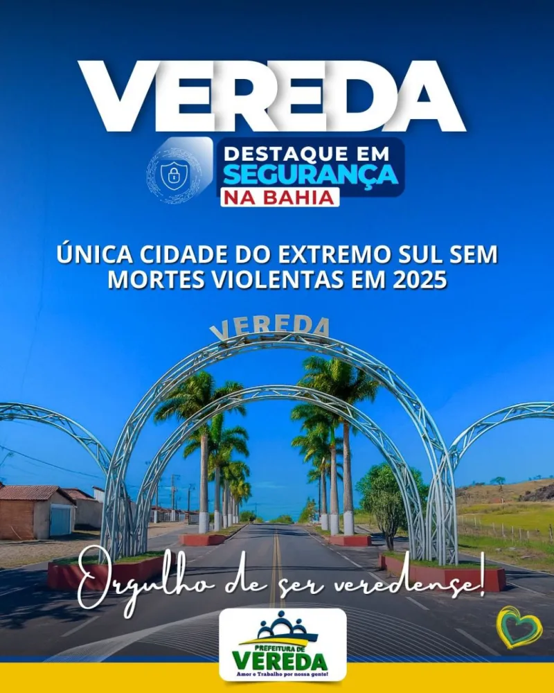 O município de Vereda vem se destacando em todo o Extremo Sul da Bahia por seus avanços expressivos na área da segurança pública. De acordo com os dados mais recentes, Vereda é a única cidade da região que não registrou mortes violentas em 2025, um marco que reflete o compromisso e o trabalho conjunto entre o poder público, as forças de segurança e a população.