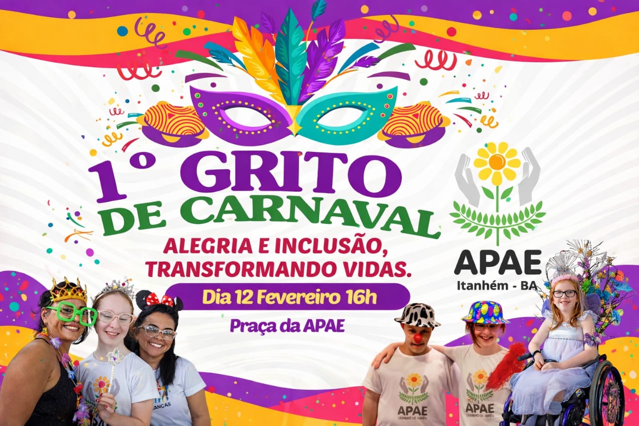 A Associação de Pais e Amigos dos Excepcionais (APAE) realiza, no próximo dia 12 de fevereiro de 2026, o tradicional Grito de Carnaval, um evento voltado à inclusão, integração social e celebração da diversidade.